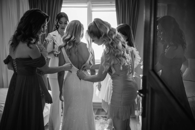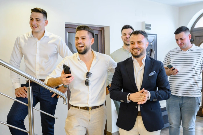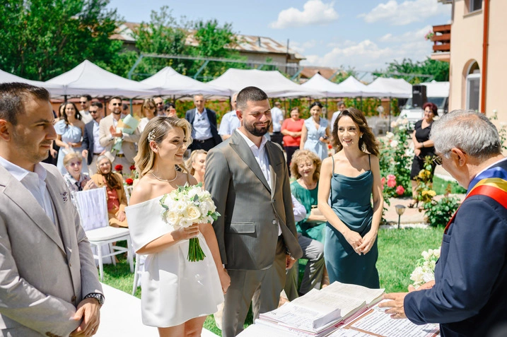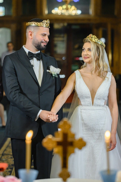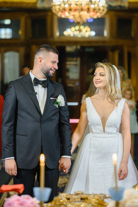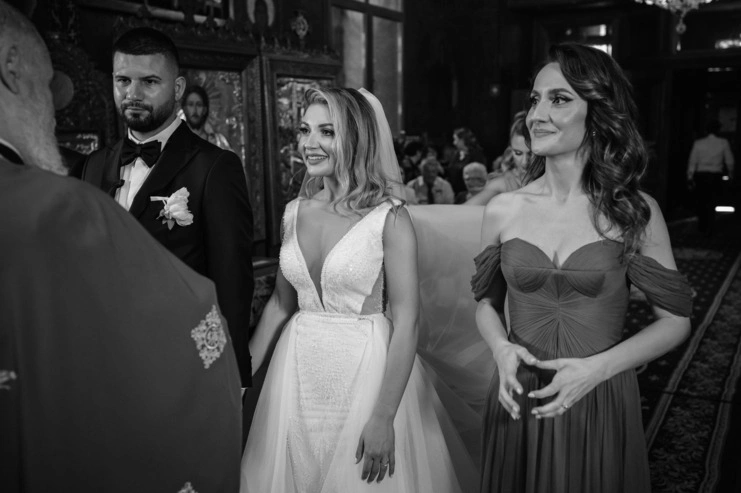 Pe Daniel îl cunosc de pe vremea facultății. L-am văzut în tot felul de ipostaze, dar în ziua nunții… avea un fel de liniște în priviri, de parcă totul se așezase. Genul ăla de privire care spune fără cuvinte: „Da, ea e.” Iar Mihaela? Înconjurată de domnișoarele ei de onoare, a fost un mix perfect de bucurie și emoție pură.